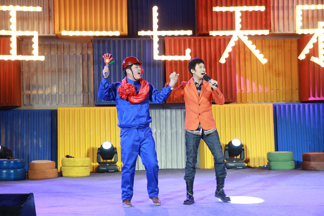 本次《五一七天樂》節(jié)目的主題是“五一七天樂,勞動(dòng)更快樂”。節(jié)目在獨(dú)具勞動(dòng)特色的開場(chǎng)舞《最炫民族風(fēng)》中拉開演出序幕,于文華、管彤推著小推車出場(chǎng),車上的大箱子引起了觀眾們的好奇。正當(dāng)觀眾遺憾和猜測(cè)禮物是什么的時(shí)候,老畢出奇意外地從箱子里出來,這份始料未及的“大禮”頓時(shí)引起了現(xiàn)場(chǎng)觀眾一陣歡呼。隨后其他嘉賓分別騎玩具小車登臺(tái),《五一七天樂》節(jié)目開始。節(jié)目以比賽的形式進(jìn)行,眾位嘉賓分成“紅薯”和“拔絲”倆隊(duì),現(xiàn)場(chǎng)比拼才藝。