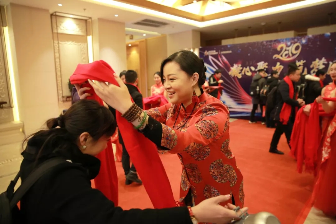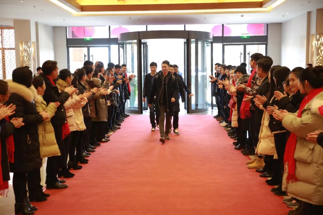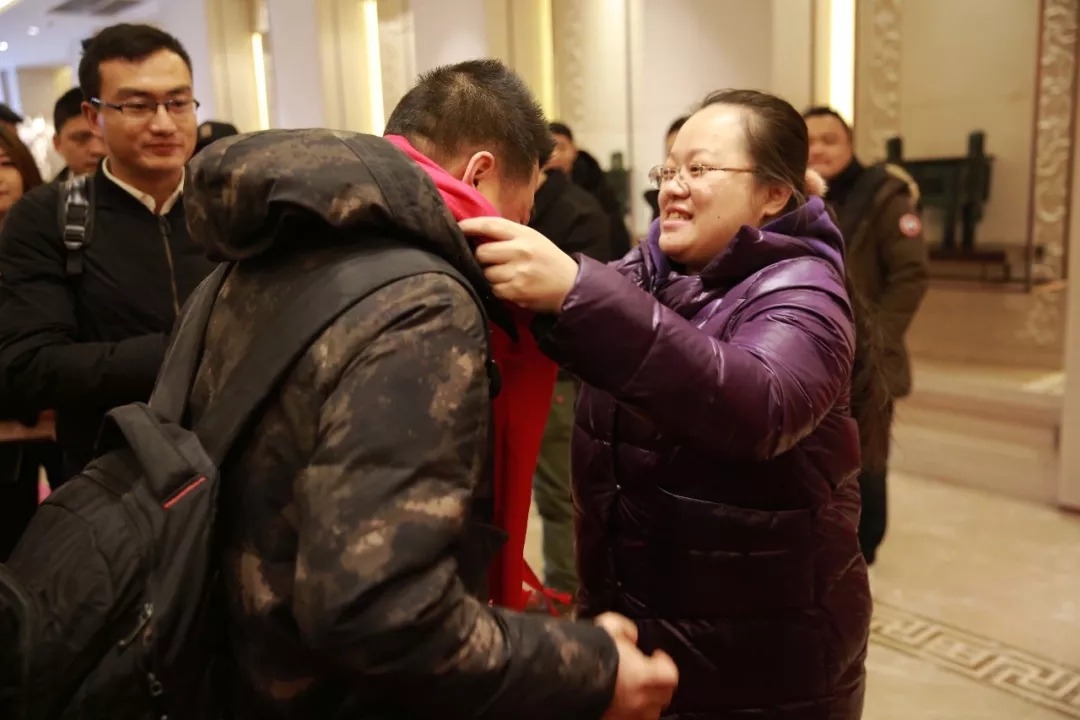 滿懷喜悅的心情,康姿百德的家人們踏上紅毯,緩緩走向會場入口。守候在會場入口的領(lǐng)導(dǎo)們,為大家?guī)显⒁庵凹楹眠\”的紅圍巾,把最誠摯、最真情的祝福送給每位康姿百德家人。