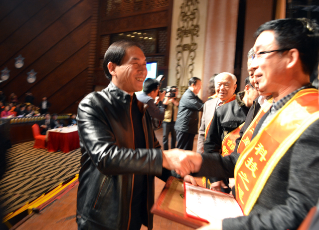 頒獎(jiǎng)嘉賓為董事長(zhǎng)李銀祥頒發(fā)證書并祝賀