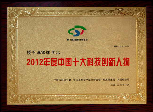 董事長(zhǎng)李銀祥榮獲“2012年度中國(guó)十大科技創(chuàng)新人物”獎(jiǎng)