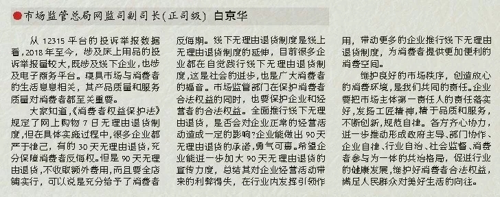 大家知道,《消費(fèi)者權(quán)益保護(hù)法》規(guī)定了網(wǎng)上購物7日無理由退貨制度,但在具體實(shí)施過程中,很多企業(yè)都嚴(yán)于律己,有的30天無理由退貨,充分保障消費(fèi)者反悔權(quán)。但是90天無理由退貨,不收取額外費(fèi)用,而且要全店鋪實(shí)行,可以說是充分給予了消費(fèi)者反悔期。線下無理由退貨制度是線上無理由退貨制度的延伸,目前很多企業(yè)都在自覺踐行線下無理由退貨制度,這是社會的進(jìn)步,也是廣大消費(fèi)者的福音。市場監(jiān)管部門在保護(hù)消費(fèi)者合法權(quán)益的同時(shí),也要保護(hù)企業(yè)和經(jīng)營者的合法權(quán)益。全面推行線下無理由退貨,是否會對企業(yè)正常的經(jīng)營活動造成一定的影響?企業(yè)能做出90天無理由退貨的承諾,勇氣可嘉。希望企業(yè)能進(jìn)一步加大90天無理由退貨的宣傳力度,總結(jié)其對企業(yè)經(jīng)營活動帶來的利弊得失,在行業(yè)內(nèi)發(fā)揮引領(lǐng)作用,帶動更多的企業(yè)推行線下無理由退貨制度,為消費(fèi)者提供更加便利的消費(fèi)空間。