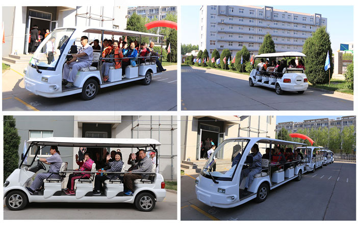 健身愛好者們乘觀光車參觀康姿百德第一科技園