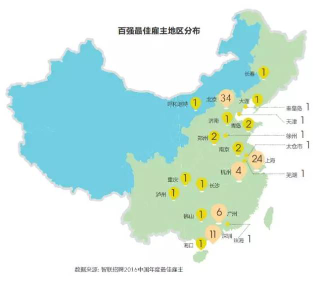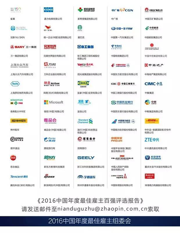 「2016中國年度最佳雇主百強(qiáng)榜單」如下: