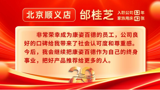 康姿百德20周年專賣店員工的系列故事會持續(xù)推出,讓我們一起期待其他地區(qū)專賣店員工代表的精彩故事吧!
