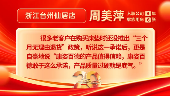 康姿百德20周年專賣店員工的系列故事會持續(xù)推出,讓我們一起期待其他地區(qū)專賣店員工代表的精彩故事吧!