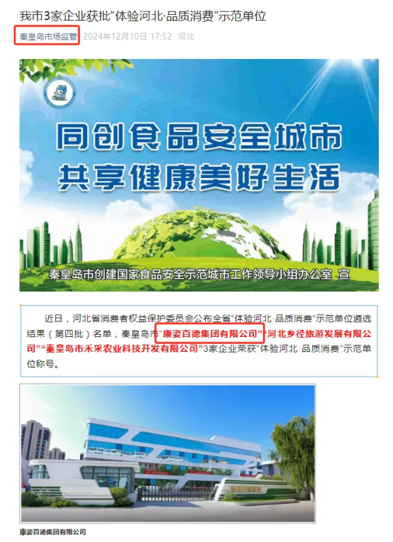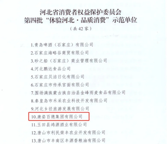 秦皇島市場監(jiān)管部門于12月10日在公眾平臺(tái)公布了本市第四批“體驗(yàn)河北·品質(zhì)消費(fèi)”示范單位入選名單,康姿百德集團(tuán)榜上有名。