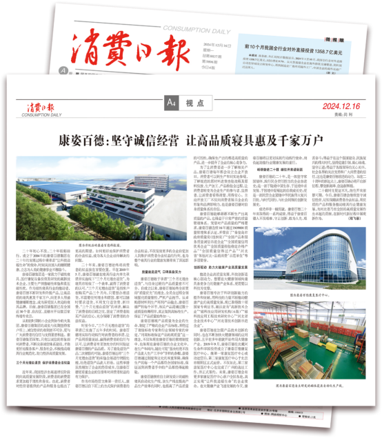 《消費(fèi)日?qǐng)?bào)》由國(guó)務(wù)院國(guó)有資產(chǎn)監(jiān)督管理委員會(huì)舉辦,中國(guó)輕工業(yè)聯(lián)合會(huì)主管主辦,是我國(guó)消費(fèi)領(lǐng)域中一張全國(guó)性、全方位、大容量的綜合性日?qǐng)?bào)。其立足消費(fèi)領(lǐng)域,依托輕工行業(yè),面向城鄉(xiāng)市場(chǎng),最先發(fā)布相關(guān)的專業(yè)權(quán)威信息以及消費(fèi)景氣預(yù)報(bào)。近日,消費(fèi)日?qǐng)?bào)以《康姿百德:堅(jiān)守誠(chéng)信經(jīng)營(yíng) 讓高品質(zhì)寢具惠及千家萬戶》為題,對(duì)康姿百德進(jìn)行了專題報(bào)道。