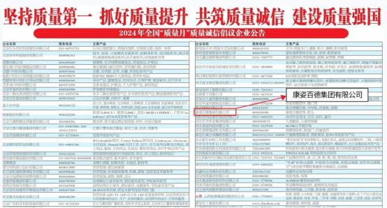 康姿百德被中國質(zhì)量檢驗(yàn)協(xié)會(huì)評(píng)選為“2024年全國‘質(zhì)量月’質(zhì)量誠信倡議企業(yè)”
