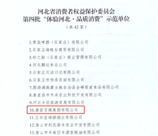 康姿百德集團(tuán)被評(píng)為河北省“‘體驗(yàn)河北·品質(zhì)消費(fèi)’示范單位”