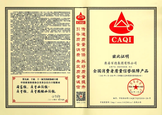 康姿百德集團(tuán)榮獲“全國消費(fèi)者質(zhì)量信譽(yù)保障產(chǎn)品”、“全國質(zhì)量檢驗(yàn)穩(wěn)定合格產(chǎn)品”榮譽(yù)稱號(hào)