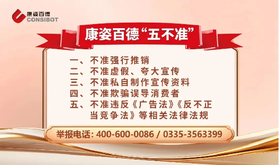 康姿百德不斷加大內(nèi)部巡查力度,嚴(yán)格監(jiān)督市場(chǎng)人員的經(jīng)營(yíng)行為,要求各專賣店在醒目位置懸掛“五不準(zhǔn)”宣傳標(biāo)識(shí),明令禁止有損消費(fèi)者權(quán)益的行為,杜絕虛假宣傳,切實(shí)做到真誠(chéng)待客,貨真價(jià)實(shí)、明碼標(biāo)價(jià)。