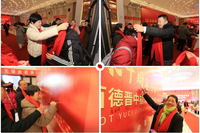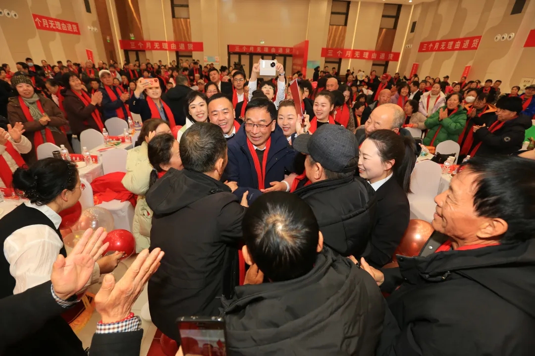 活動現(xiàn)場,銷售公司的領(lǐng)導(dǎo)們早已等候在紅毯兩側(cè),笑容滿面地為每一位步入會場的“家人”親自系上象征吉祥與溫暖的紅圍巾??底税俚录瘓F李銀祥董事長的到來,更讓現(xiàn)場瞬間沸騰,客戶們紛紛揮手致意,掌聲與歡呼聲交織成一片,將慶典的喜悅氛圍點燃。