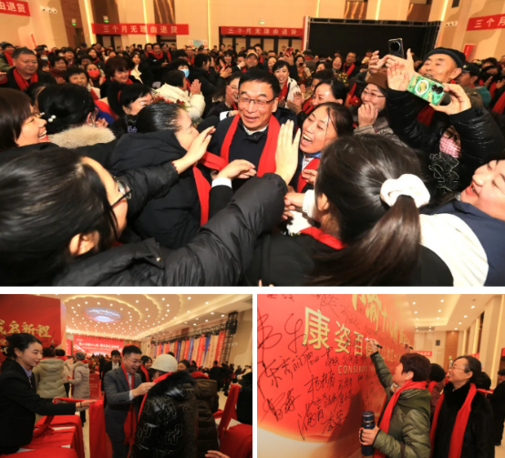 董事長(zhǎng)李銀祥親自接過(guò)錦旗與感謝信,并與客戶合影留念。溫馨的互動(dòng)場(chǎng)景,讓現(xiàn)場(chǎng)每一位觀眾都感受到了康姿百德與客戶之間深厚的感情。