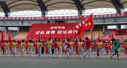 9月16日,中國(guó)登山隊(duì)攜手康姿百德2014“全民健身,快樂(lè)同行”大型公益活動(dòng)表彰大會(huì)在秦皇島奧體中心體育場(chǎng)舉行。來(lái)自全國(guó)30個(gè)省、市、區(qū)的257個(gè)代表隊(duì)、11000多人進(jìn)行了康姿百德第三套健身操展演,以此慶祝公司成立10周年?;顒?dòng)共評(píng)選出展演一等獎(jiǎng)5個(gè)、二等獎(jiǎng)10個(gè)、三等獎(jiǎng)15個(gè),并表彰了1600多名2014年“健康大使”。